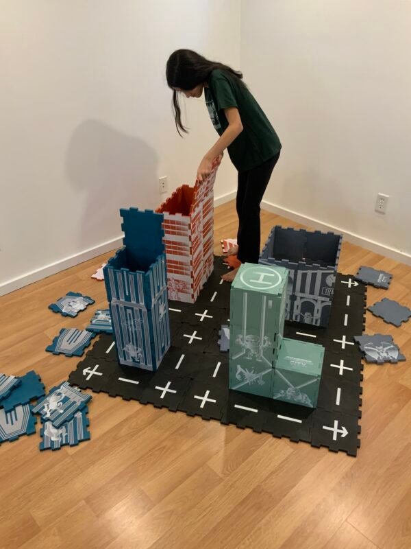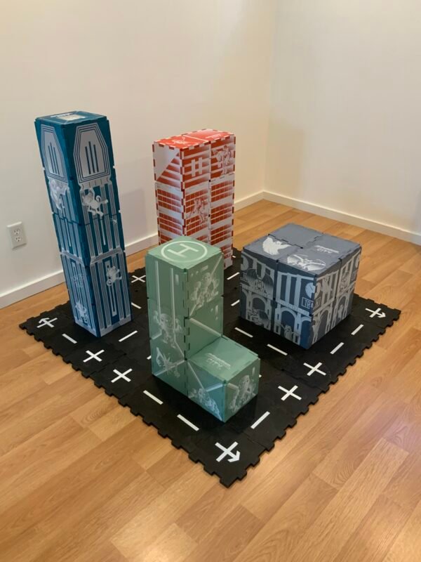 Action figures bring the city to life as kids invent heroes, villains, and dramatic rescues. Epic battles are waged in the street and the buildings. Their imagination drives every storyline forward. Children practice dialogue without realizing it, and their storytelling strengthens their language skills. Emotions are explored through characters which helps develop empathy. Friends can join and expand the narrative too.
