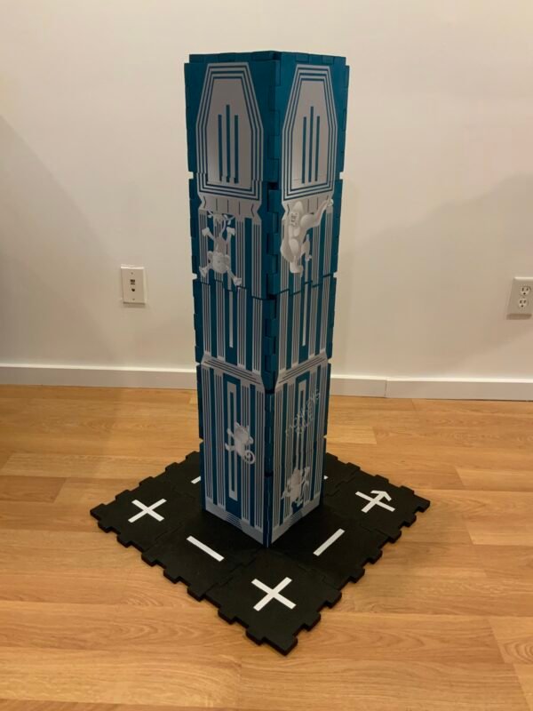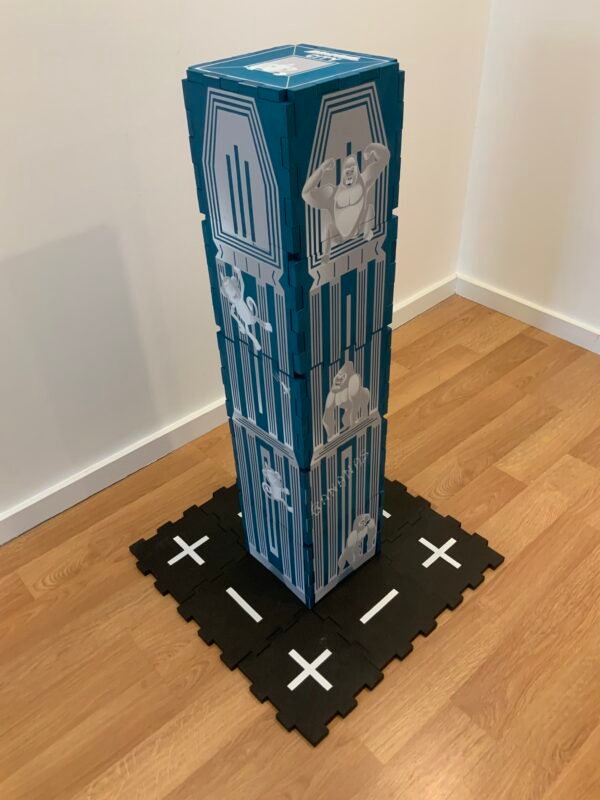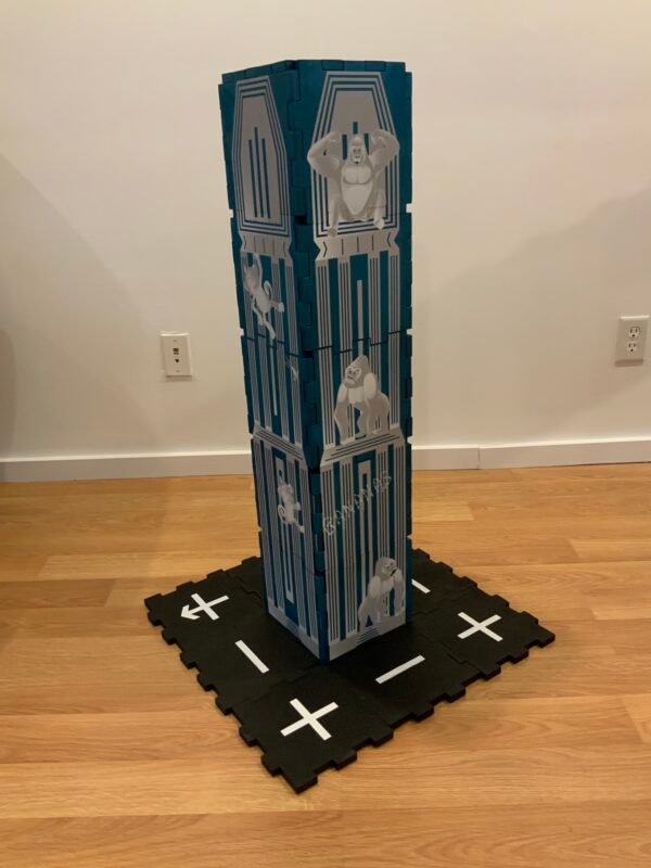 Time to monkey around! This towering blue building features monkeys and gorillas clinging to the side, ready for action. It’s the struggle for dominance of the concrete jungle. The gorillas aren’t going to take any monkey business and the city has gone bananas! Built from soft foam, it’s perfect for dramatic topples, daring rescues, and jungle-sized fun.
